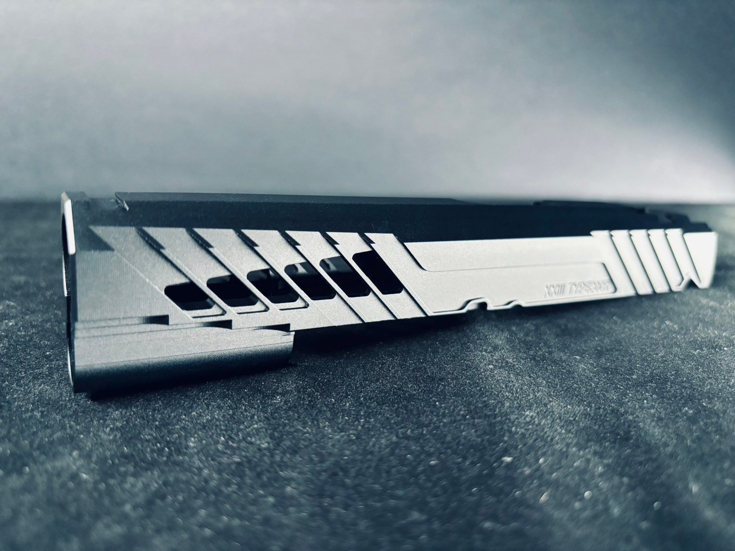 源自於Type300,繼承了所有Type300優點以外,我們在第一角度的地方,進行重量減輕的工法,以漸進式的大小,去簍空第一角度,在減輕重之餘,又不影響射手的抓握感